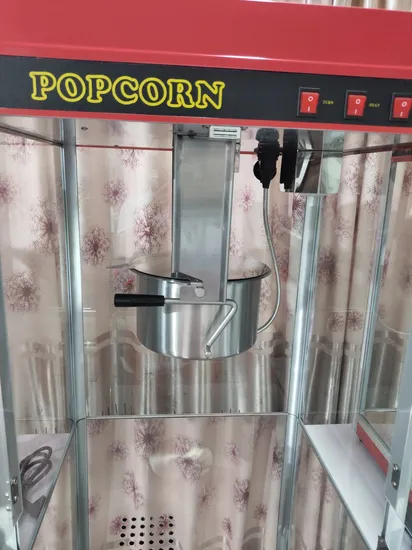 Upgrade your snack service with this 16oz popcorn machine, designed for both commercial and home use. Built with a stainless steel 16-ounce kettle, it ensures food safety, durability, and consistent popcorn production — perfect for cinemas, events, and concession stands.