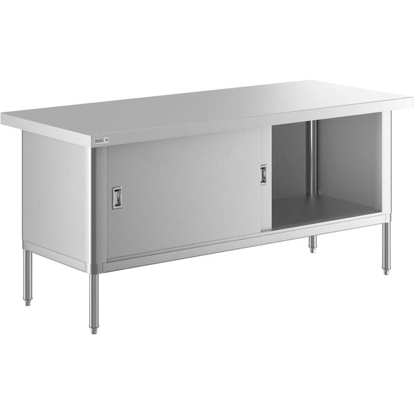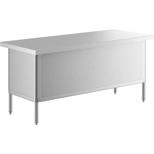 Provide an efficient and organized work and storage space with this Steelton 30″ x 72″ 16 gauge type 430 stainless steel enclosed base table. With a large 30″ x 72″ worktop, this table has plenty of room to operate. This enclosed base table is made to hold up to the wear and tear of your busy kitchen.