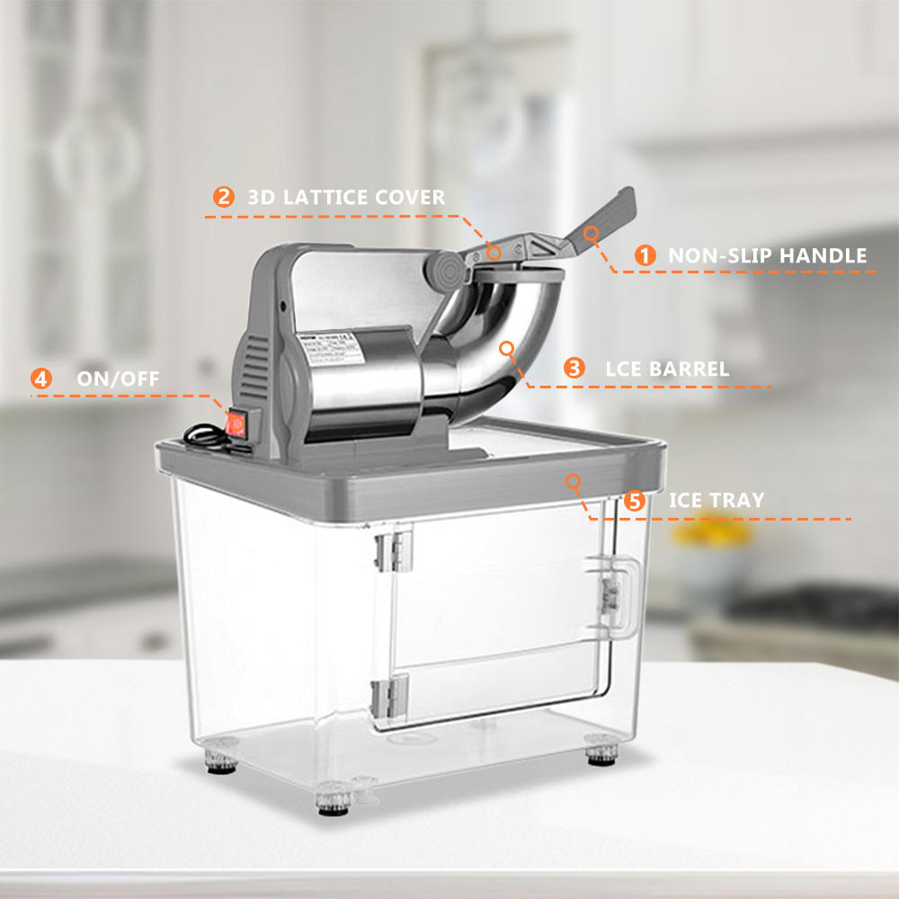● User-Friendly Design: Ergonomic handle for easy operation, limit switch for safety, and a waterproof ON/OFF switch. Suitable for making snow cones, slushies, milkshakes, and more.