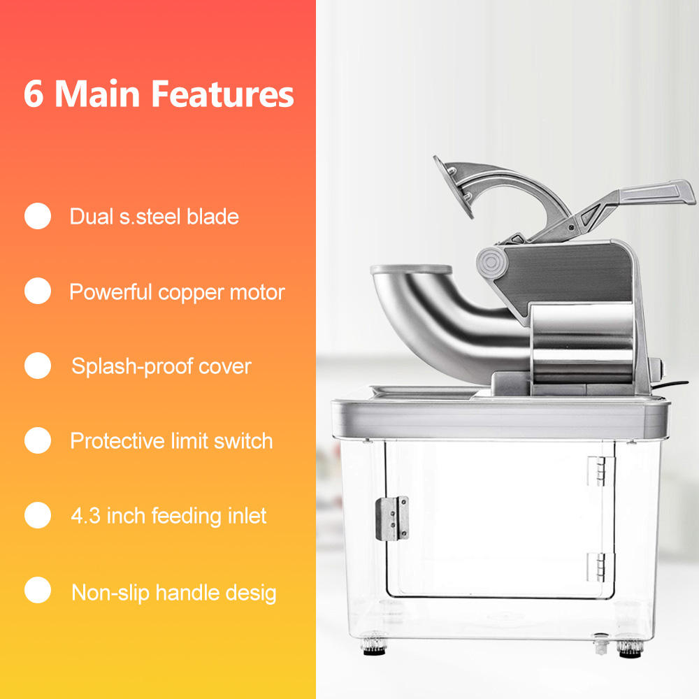 ● Premium Quality & Safety: CE certified for commercial use, made with high-quality materials including a stainless steel hopper, food-grade stainless steel blades, and a one-piece injection-molded PC container.